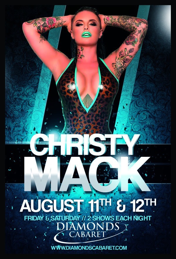 Christy Mack will be performing 2 shows nightly. Between shows she will be mingling with the guests, taking photos and doing lap dances. “I can’t wait to rock the stage at Diamond Cabaret and party with my fans!” says Christy Mack. These shows will definitely be standing room only - so make sure to get there early.