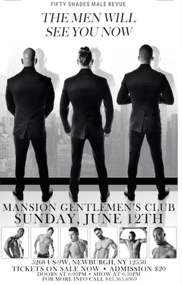 The Fifty Shades of Men Male Revue will be feature dancing at The Mansion Gentlemen’s Club in Newburgh NY on Sunday, June 12th, 2016.