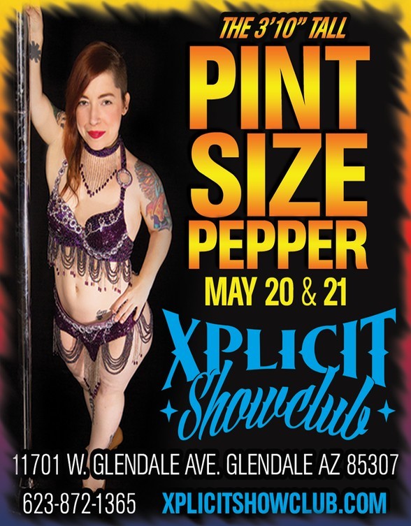 Pint Size Pepper will be feature dancing at Xplicit Showclub in Glendale on Friday May 20th 2016 and Saturday May 21st 2016