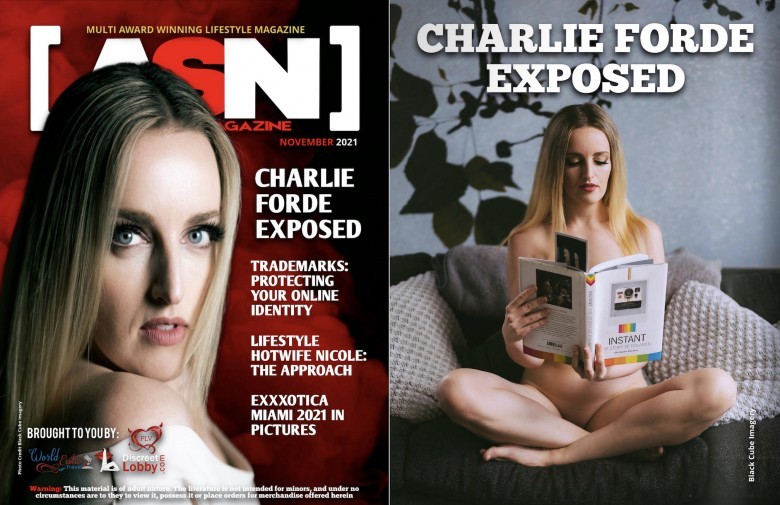 Stunning all-natural, blonde, blue-eyed Aussie adult star, content producer, and pole dancer Charlie Forde can add another publication to her list of 2021 triumphs. She's the cover star and has a 14-page feature in the November issue of ASN Lifestyle Magazine.