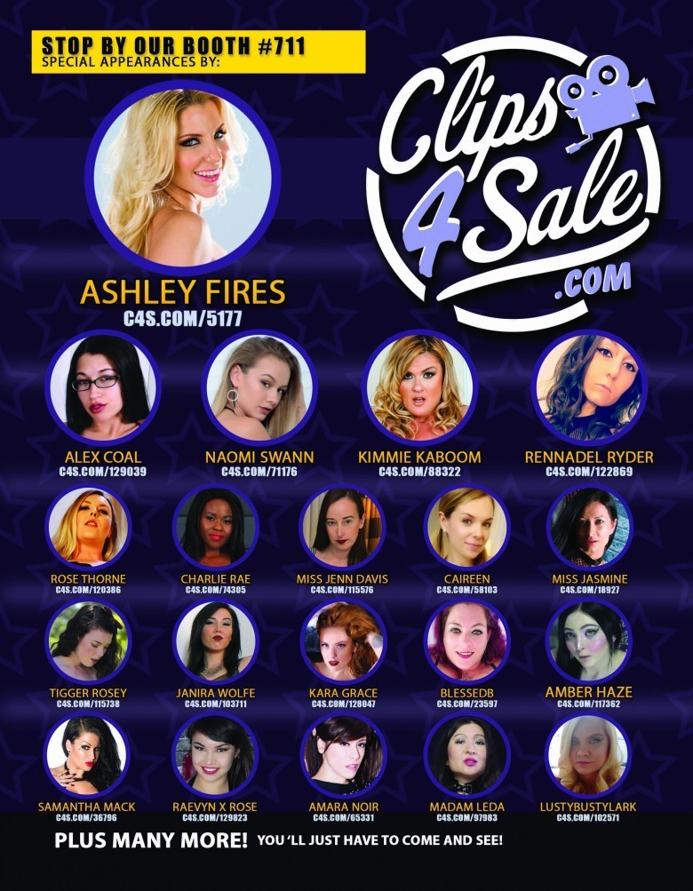 The Taboo Show is known as the “naughty but nice sex show”. The upscale adult playground caters to enhancing lifestyles, encouraging romance, and of course, all things taboo. Attendees can shop, meet adult stars, attend seminars and much more. The Clips4Sale booth is offering a wide variety of models and producers in their booth including spokesmodel Ashley Fires, along with Alex Coal, Amara Noir, Amber Haze, Caireen, Charlie Rae, Goddess Rose Thorne, Janira Wolfe, Kara Grace, Kimmie KaBoom, LustyBustyLark, Madam Leda, Miss Jasmine, Miss Jenn Davis, Naomi Swann, Raevyn X Rose, Rennadel Ryder, Samantha Mack, Tigger Rosey, and many more. In addition to meeting all the fetish and adult producers and stars, fans will be treated with tons of Clips4Sale swag and all models and producers signing for them will be giving out complimentary signed photos.
