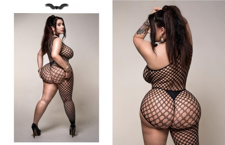 Bold, controversial, uncensored men’s magazine B.A.D.D. Magazine is known for spotlighting curvy and tattooed models. Romi is spotlighted in the Beauty & Brains issue, and the title perfectly describes her. Her fans can see her like never before in a multi-page spread of photos by Infinite Images. The layout has the copy “Lustfully Bad” at the top of the first page. Romi flaunts her curves in a fishnet bodysuit, a g-string, pasties, and killer heels.