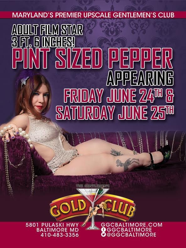 Pint Size Pepper will be feature dancing at The Gentlemen’s Gold Club in Baltimore, MD on Friday June 24th and Saturday June 25th, 2016.