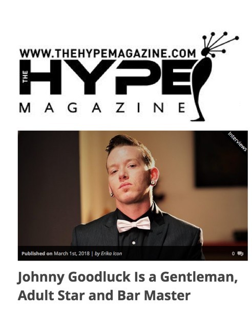 Johnny’s interview is part of Conversations on The Hype. “Johnny Goodluck Is a Gentlemen, Adult Star & Bar Master” delves into his passion as a mixologist. He discusses how he got into it, His favorite drink to make, what makes the perfect cocktail, the best bartending advice he ever received, the crucial thing all tapsters must know, and much more. Plus, he gives readers an exclusive drink recipe for his signature cocktail Silence of the Gingers. And, there are several photos of Goodluck tending bar and at adult events. Read the article in its entirety at https://www.thehypemagazine.com/2018/03/johnny-goodluck-is-a-gentleman-adult-star-and-bar-master/
