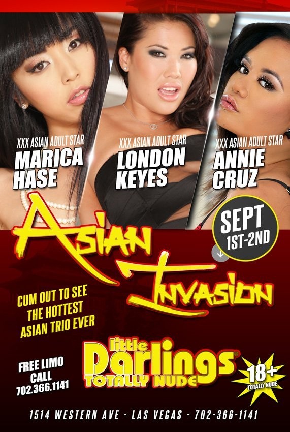 (Hollywood, CA) Exotic, petite Japanese adult star Marica Hase is headed for Sin City to feature at Las Vegas’ world famous gentlemen’s club Little Darlings on Friday, September 1st and Saturday, September 2nd. And, it’s going to be an Asian invasion with her friends London Keyes and Annie Cruz also headlining.